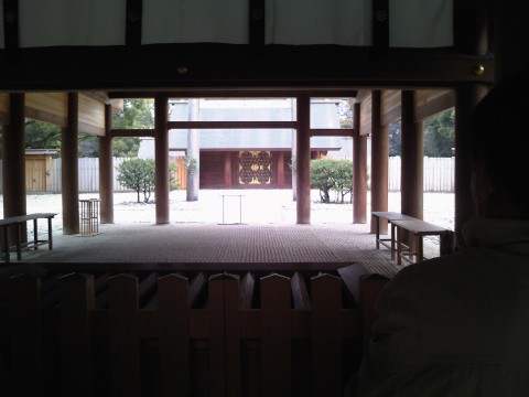 熱田神宮の拝殿から見た本殿、ずっと遠いです。